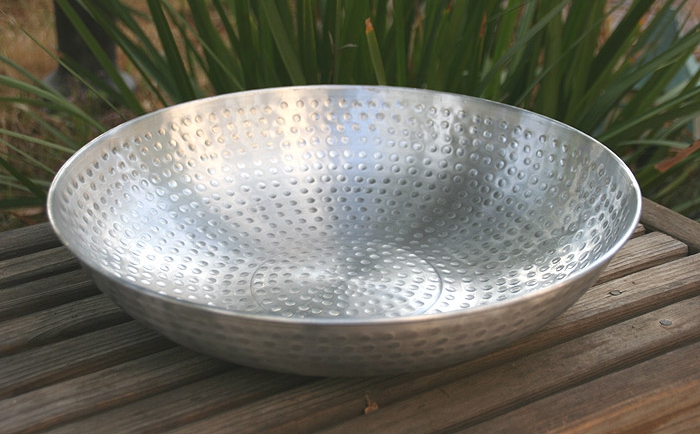 This Aluminum Dish is designed to be useful for many purposes.! Fill it with pebbles or plant it with ground cover for a gorgeous effect! Use it indoors as a container, fruit display, or whatever else you can think of. Just like our Hammer Copper Dish, but made of pure aluminum.